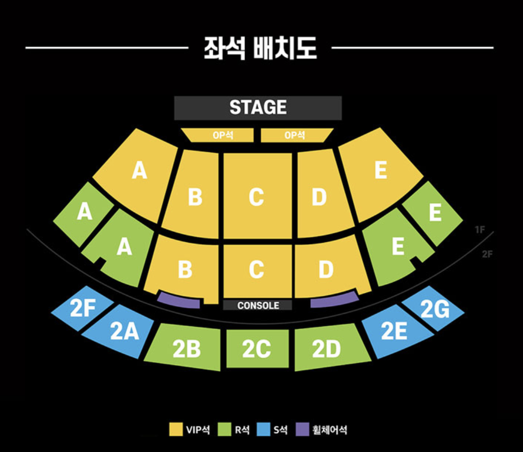- S: 2층 후열 — 가성비가 좋고 전체 연출을 넓게 볼 수 있습니다.